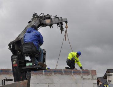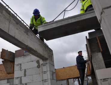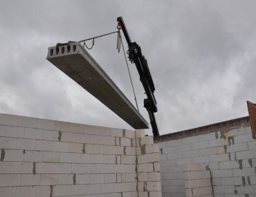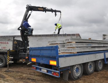 - Montaż płyt odbywa się pryz użyciu małego dźwigu HDS. Musi być zapewniony podjazd pod budynku.