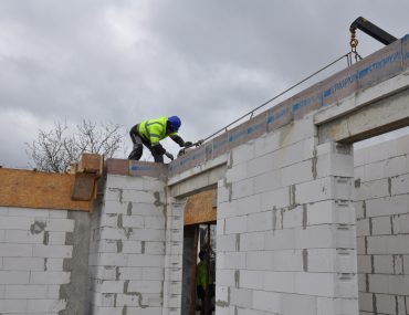 - Dwie osoby na budynku ustawiają dokłądnie płyty