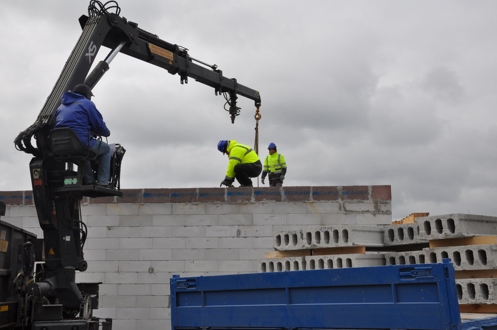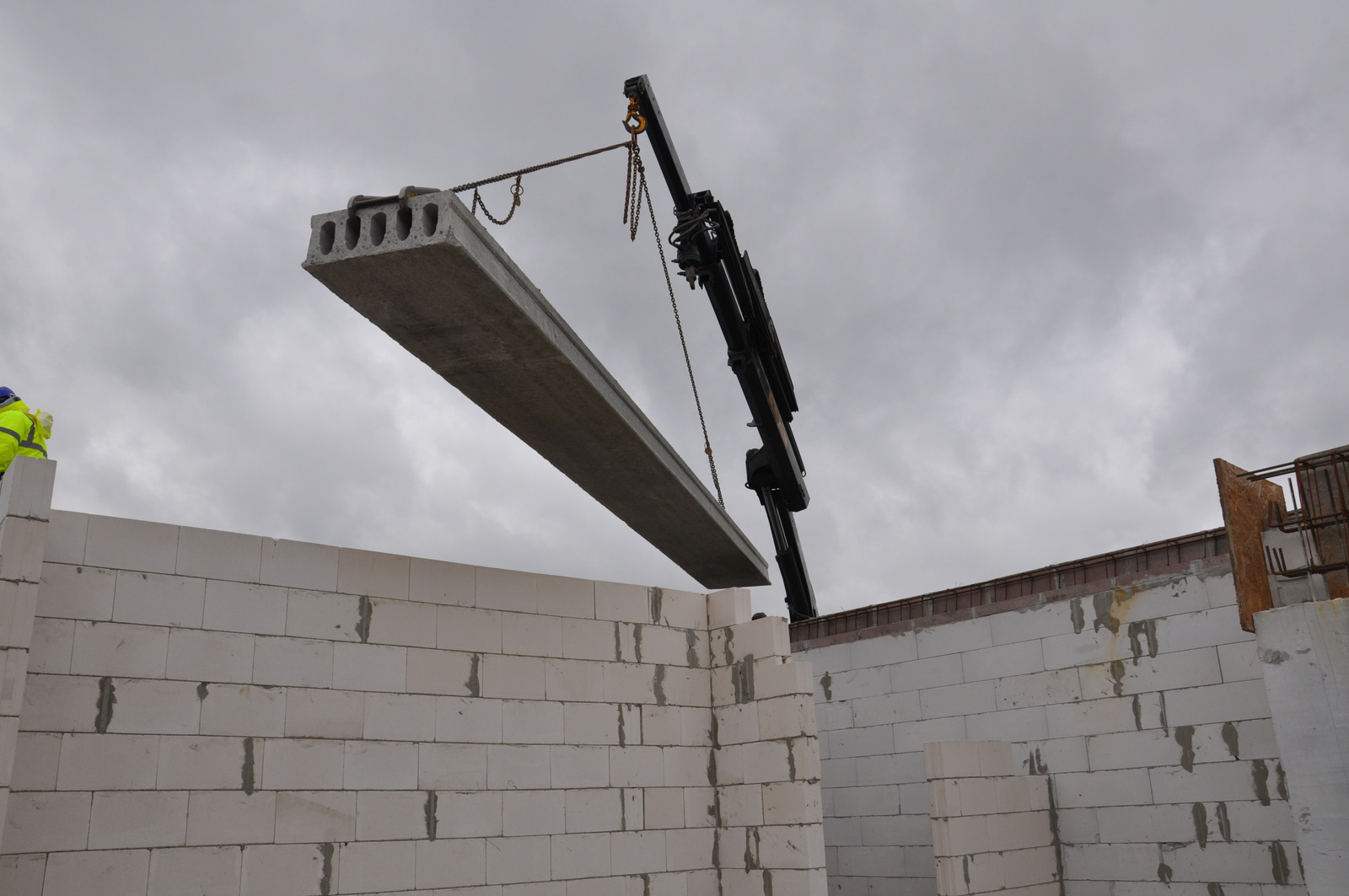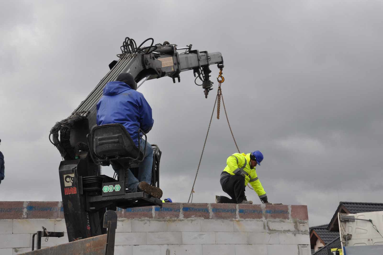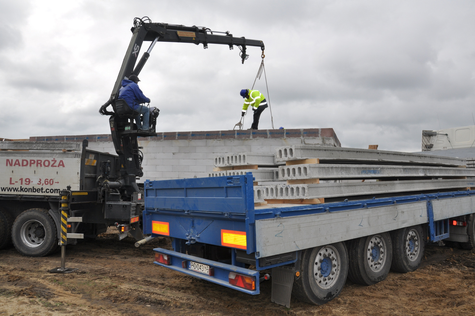 - Montaż płyt odbywa się pryz użyciu małego dźwigu HDS. Musi być zapewniony podjazd pod budynku.