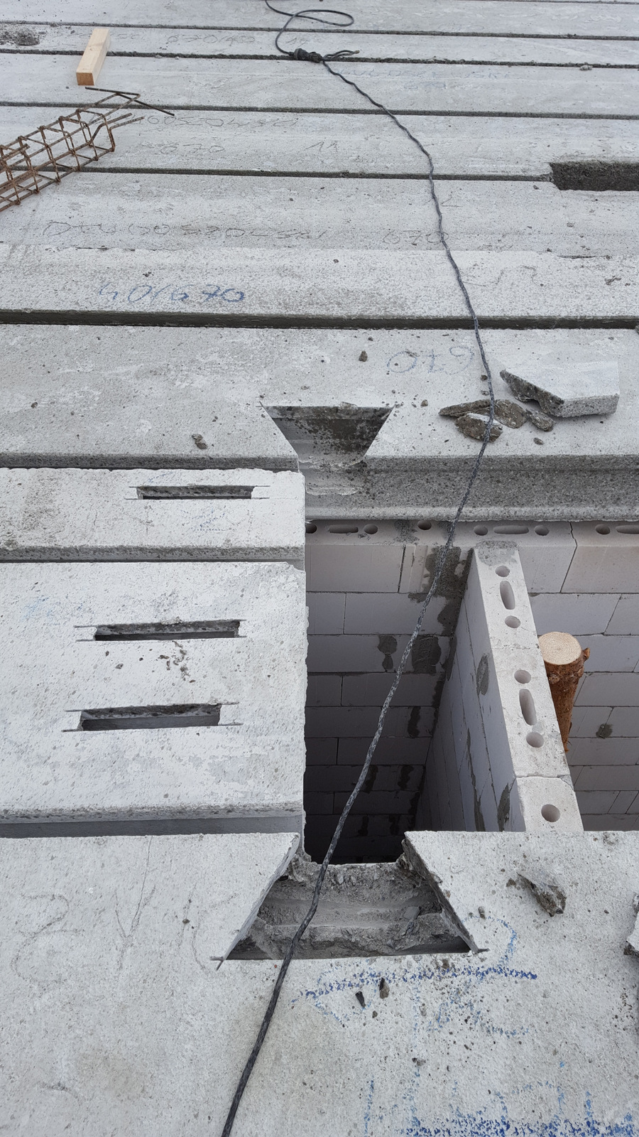 - Tutaj otwór na schody i przygotowywanie podcięć pod wymian, wymian będzie opierał się na skrajnych płytach dlatego nie są potrzebne dodatkowe podciągi, wylewki.