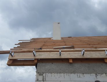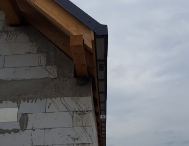 - 26.06.2017 pierwszym działaniem jest przykręcenie desek okapowych do końcówek krokwi, następnie mocowane są haki rynien