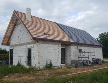Pokrycie dachu to kropka nad i stanu surowego zamkniętego, poniżej fotogaleria z tego etapu. Trochę czasu to zajęło, ale efekt końcowy zadowala w pełni. od góry stodoła jest skończona 🙂