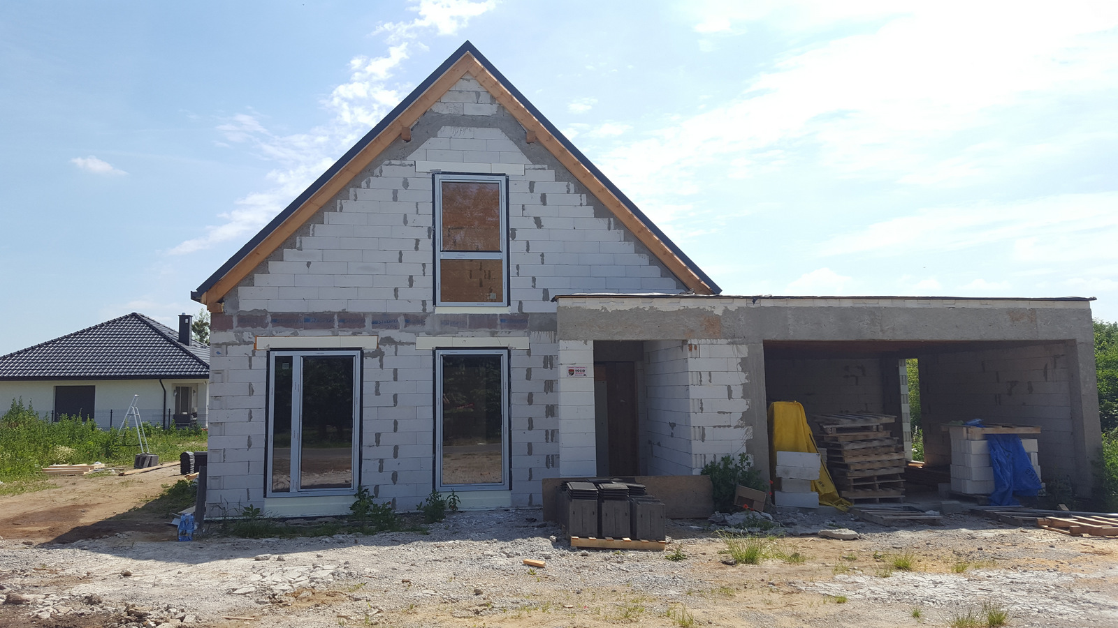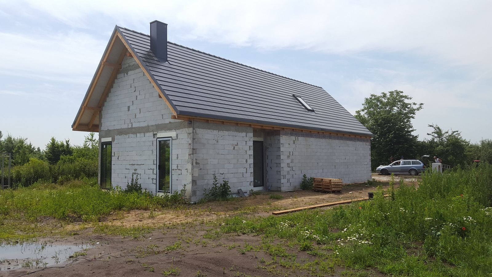 - 03.07.2017 Okna będą w kolorze dachu, rynien, okien dachowych, teraz są jeszcze zabezpieczine