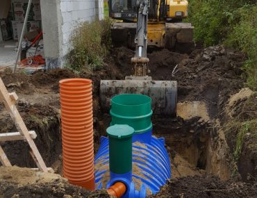 - rury i studzienki potrzebne do wykonania odcinka kanalizacji między budynkiem, a oczyszczalnią.