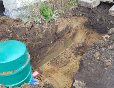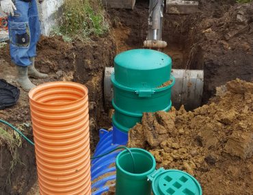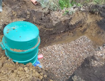 Przygotowano szeroki wykop wypełniony kruszywem, na którym ustawiono tunele rozsączające i równomiernie obsypano . Tunel rozsączający ma możliwość retencji i rozsączania powstałej wody z oczyszczalni. Tak wykonany drenaż składający się z 6 tuneli ma pojemność 1800 l wody. Na koniec do uruchomienia niezbędne jest jeszcze jest jeszcze doprowadzenia energii elektrycznej