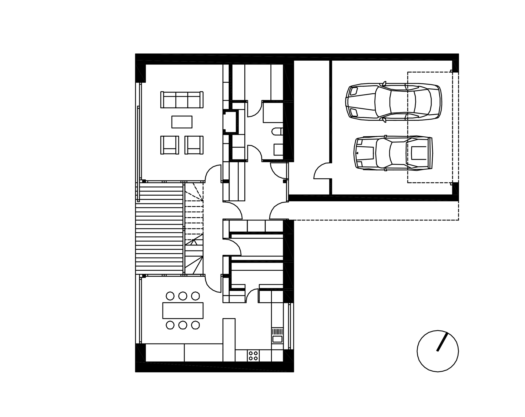 Budynek w swojej strukturze jest klasyczny. Podział stref następuje na dwóch kondygnacjach- parter z ogólnodostępną częścią dzienną i pomieszczenia nocne- pokoje na poddaszu. Klasyczna jest również nowoczesna bryła typu stodoła , z przodu z dostawionym dwustanowiskowym garażem, przypomina nieco naszą Stodołę S+.