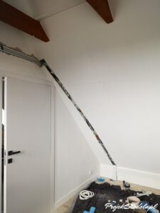 - częściwo instalacja została wkuta w ścianę lub ukryta w zadubowie dachu, a tam gdzie nie było to możliwe ukryta w korytach
