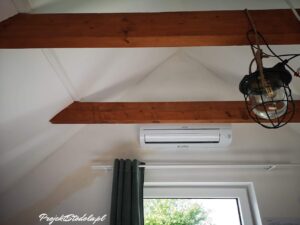 - zamontowany klimatyzator w pokoju na poddaszu
