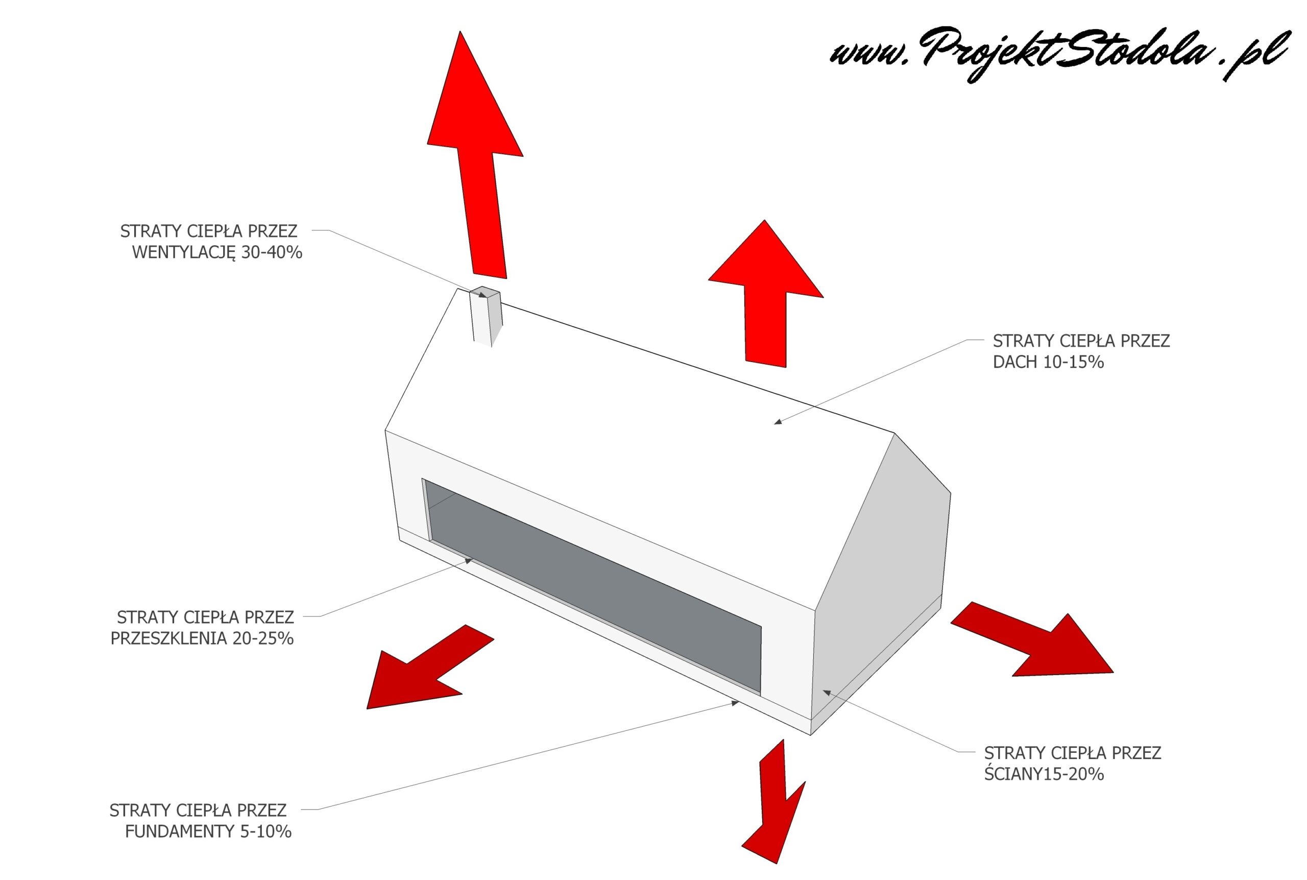 - Schemat straty cieplne występujące w budynku