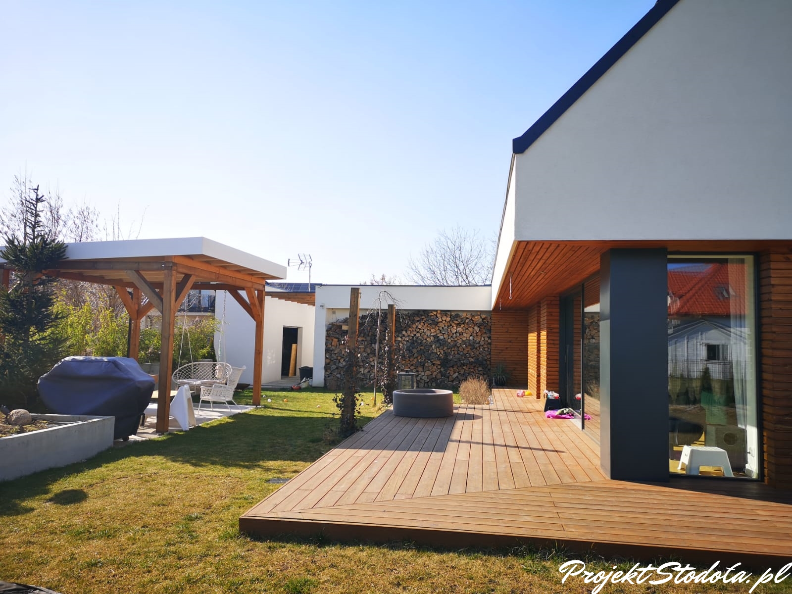 Być może, zamiast garażu, lepiej jest postawić wiatę przy budynku lub wybudować garaż o niższym standardzie wykończenia obok budynku? Można wtedy ograniczyć izolację termiczną, wykończenie wewnętrzne, standard bramy garażowej, wykonanie dachu. Podobnie podeszliśmy budując naszą stodołę M.