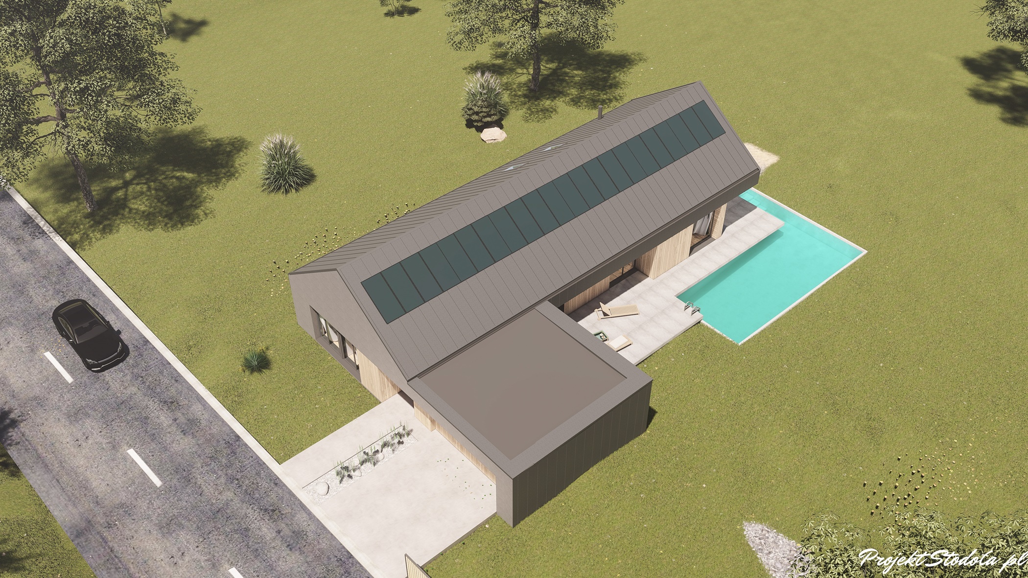- Projekt Stodoła S+ Premium elewacja ogrodowa