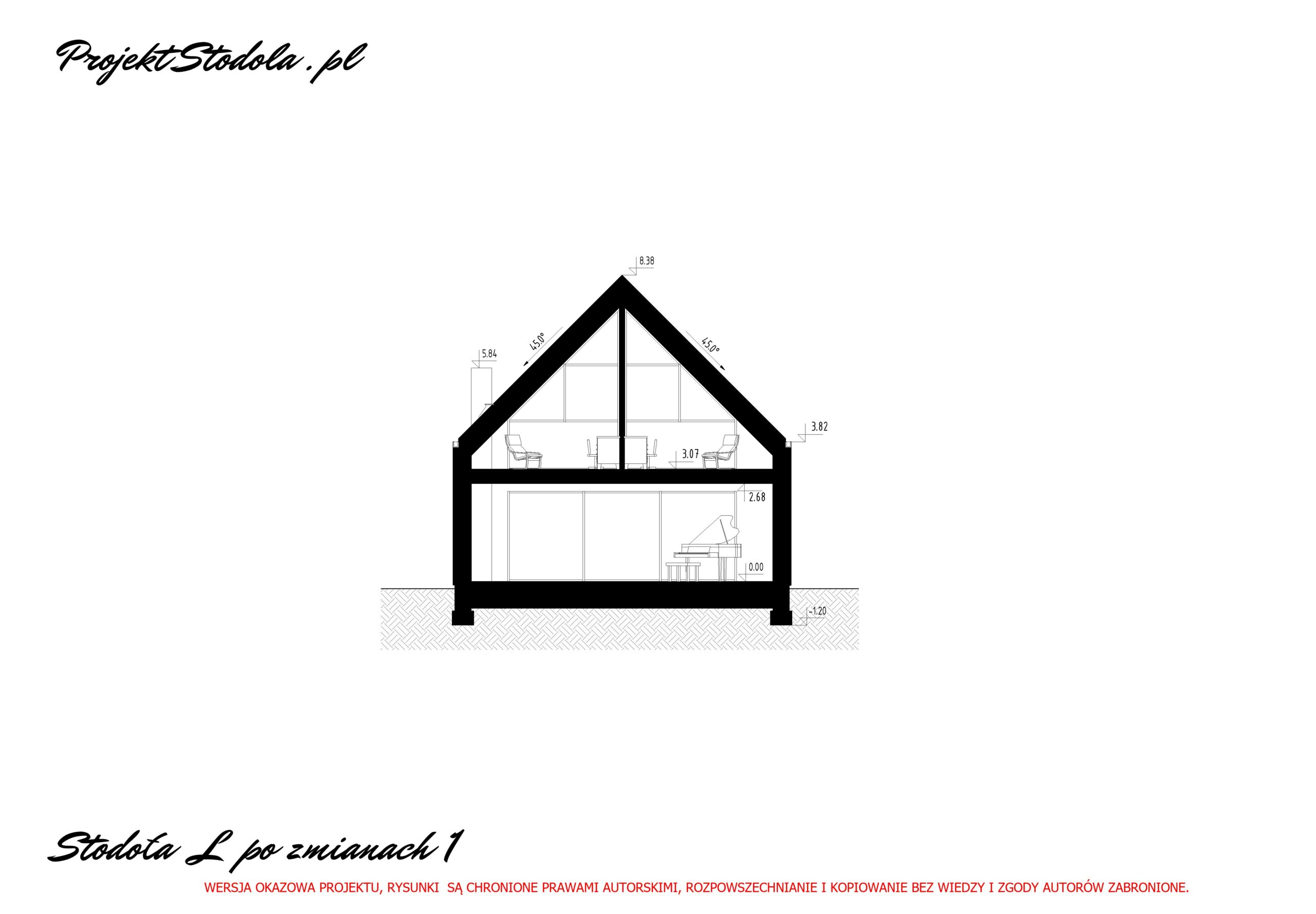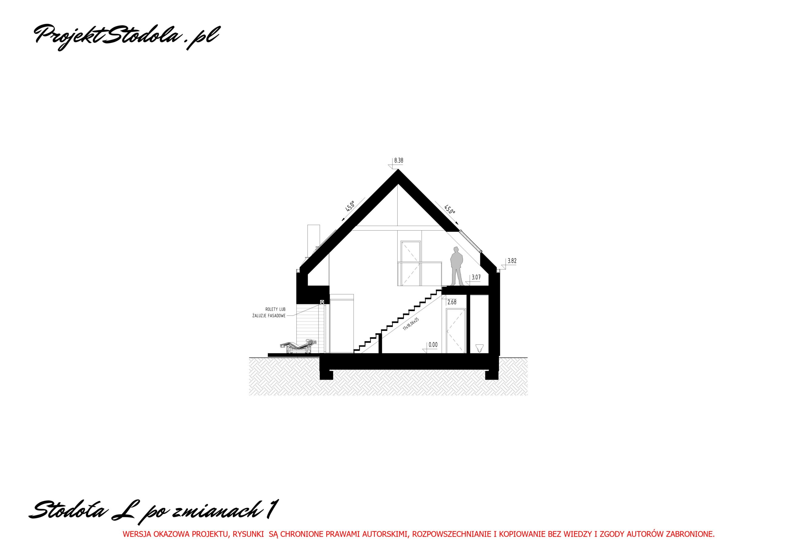 Wysokość budynku projektowanego: 8,38 m