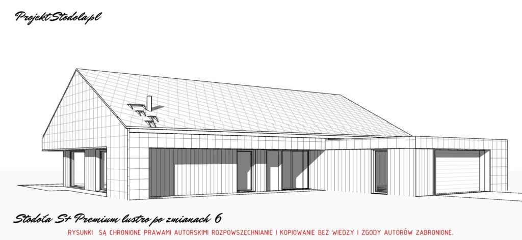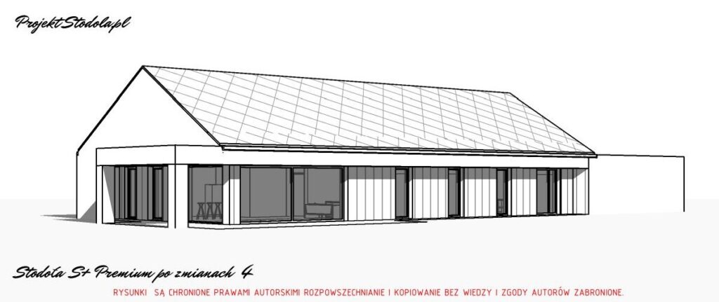 -Stodoła S+ Premium wersja lustrzane odbicie z wprowadzonymi zmianami, między innymi: Zmiana kąta nachylenia dachu na 40 st, podwyższenie dachu, likwidacja okapów, zmiana wszystkich przeszkleń, […]