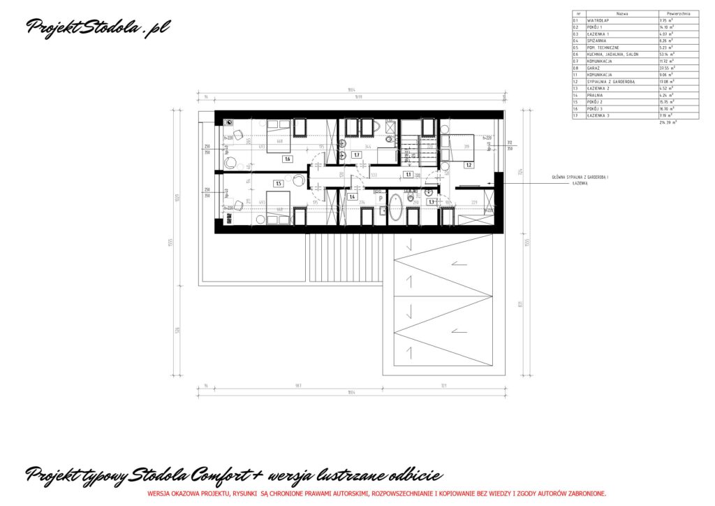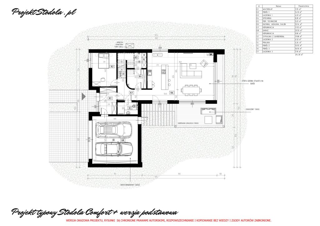 Projekt zagospodarowania działki z częścią opisową należy trwale połączyć z Projektem Budowlanym lub zamieścić w osobnej oprawie: tomie (teczce), stanowiącym z zakupionym Projektem Typowym komplet Projektu Budowlanego.
