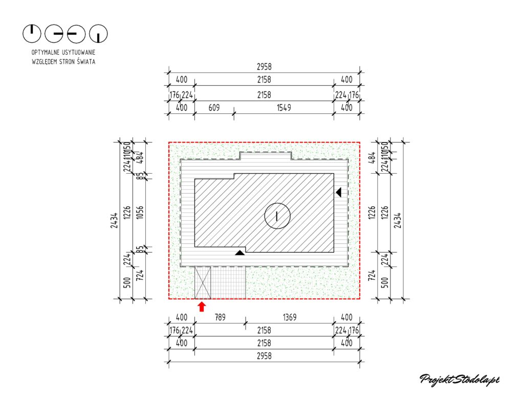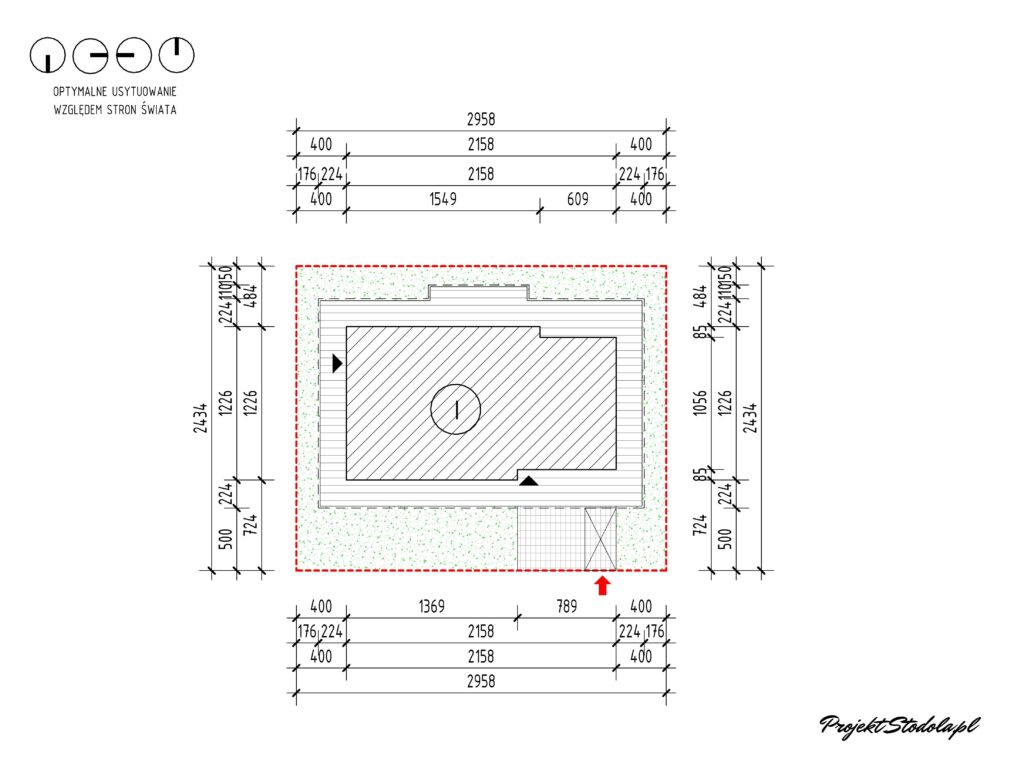 - Minimalne wymiary działki:29,58x24,34 m