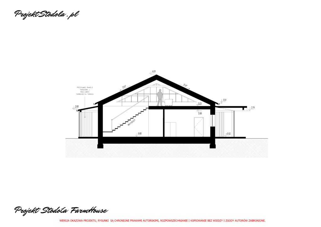 - Wysokość budynku w kalenicy:6,51 m