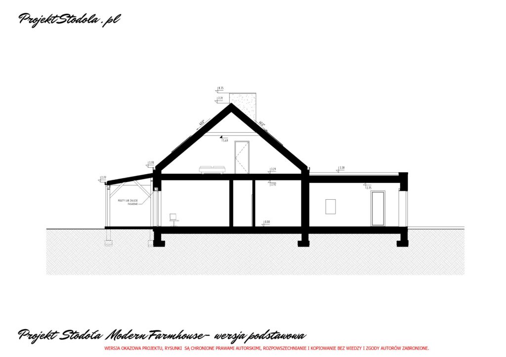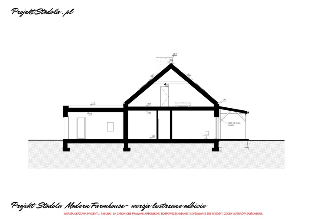 - Projekt Stodoła Modern Farmhouse Przekrój przez garaż
