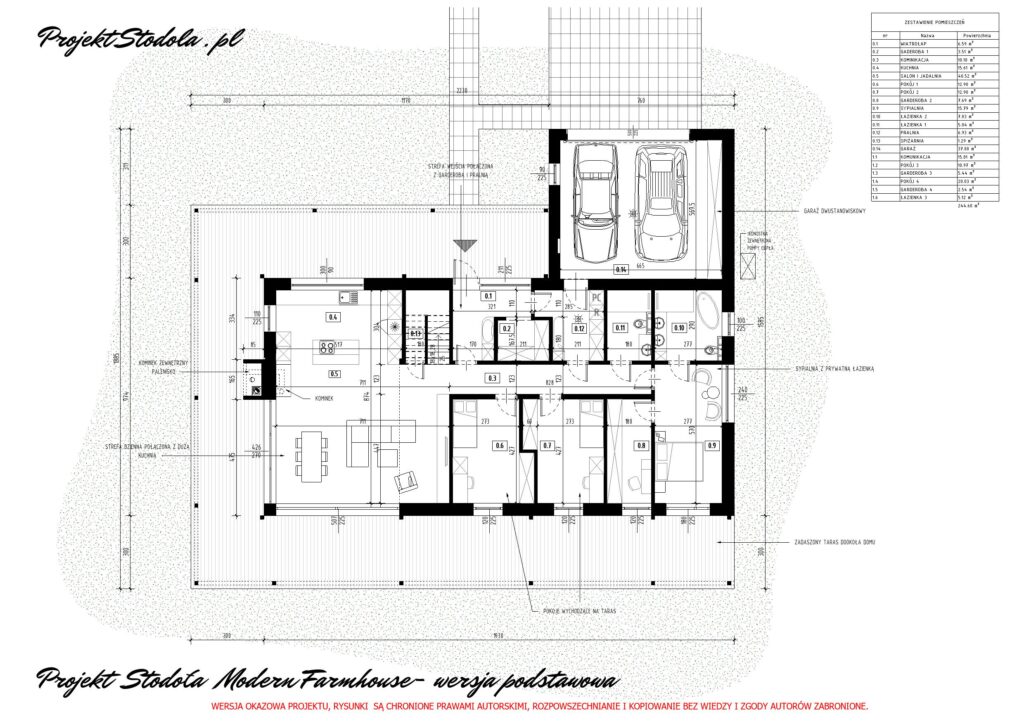 - Powierzchnia zabudowy budynku z garażem 248,65 m²