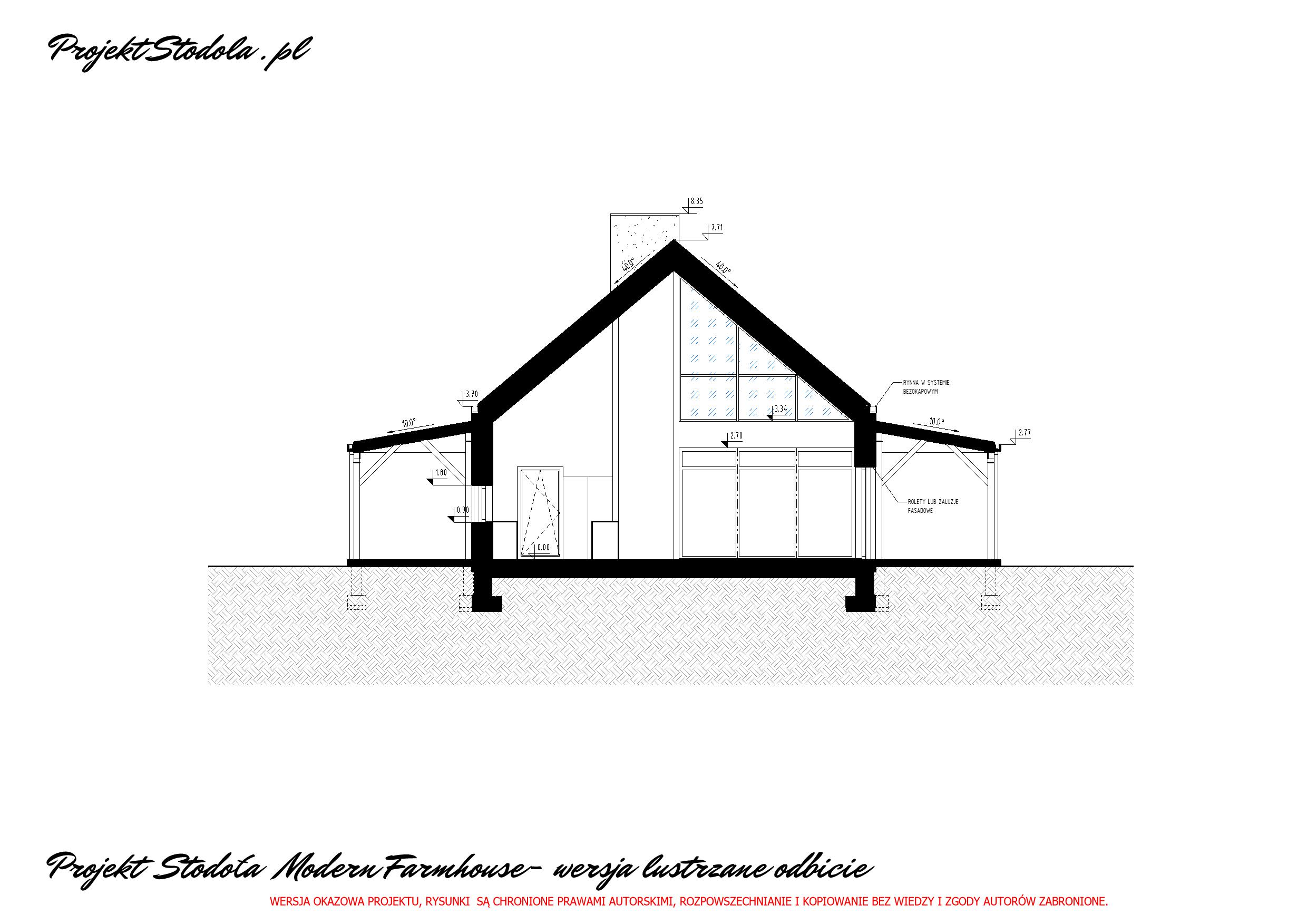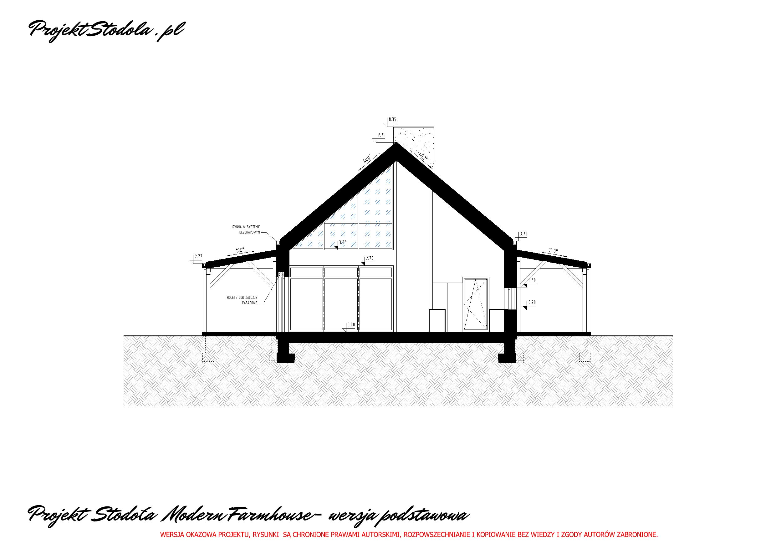 - Projekt Stodoła Modern Farmhouse Przekrój przez garaż