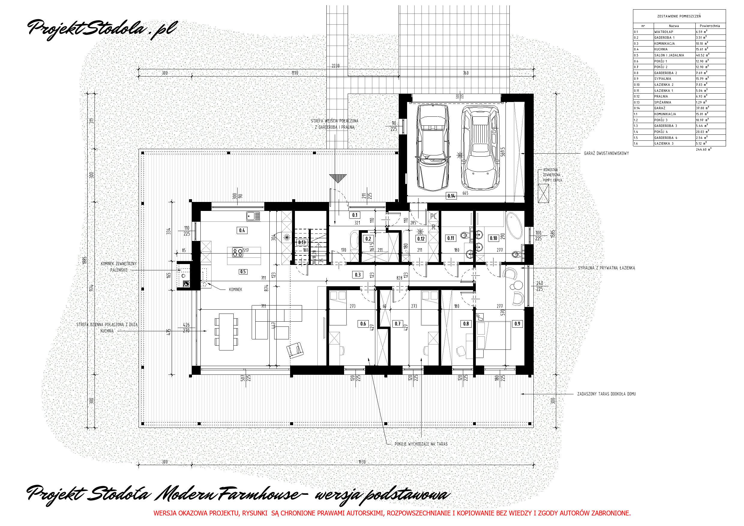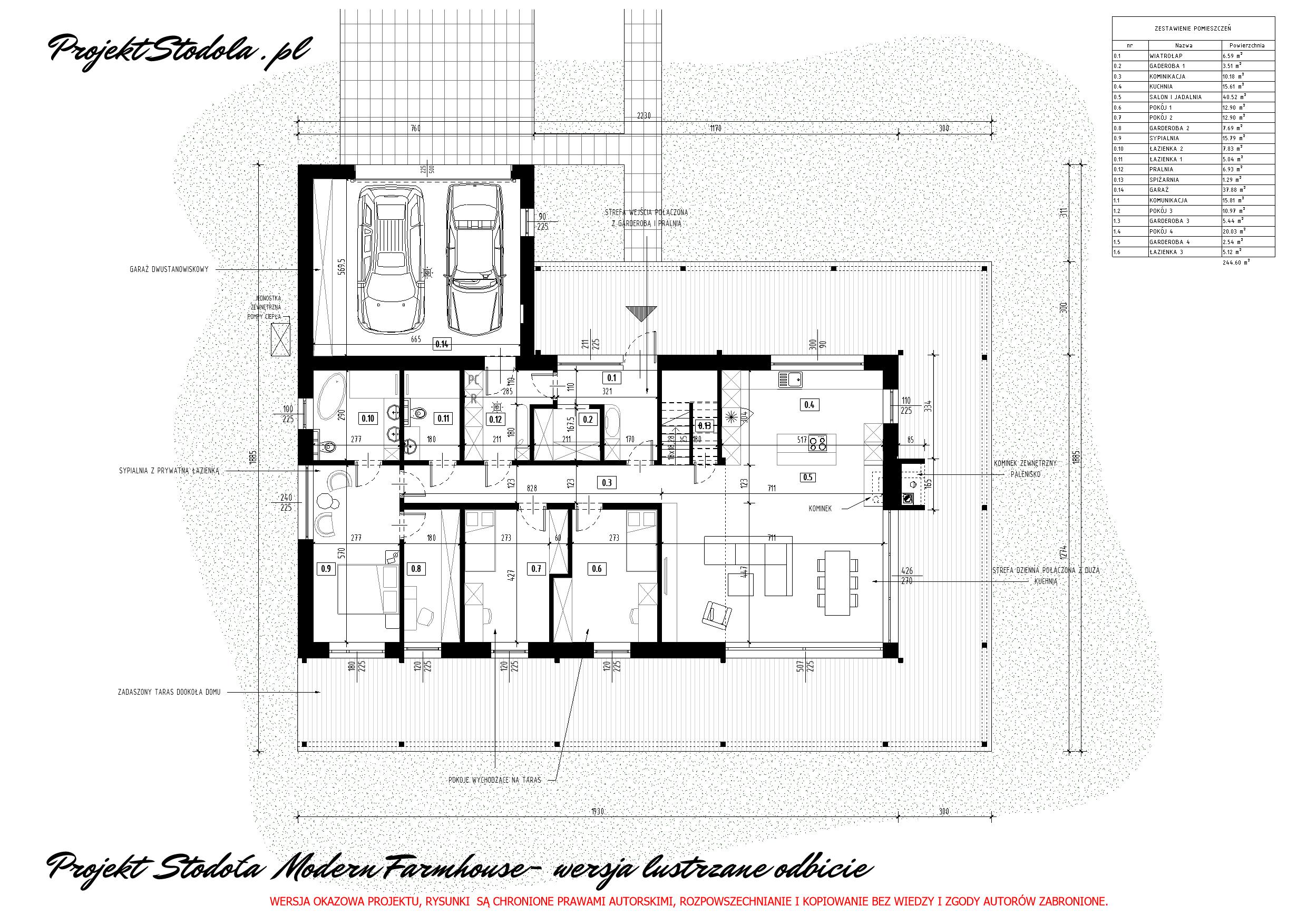 - Powierzchnia zabudowy budynku z garażem 248,65 m²