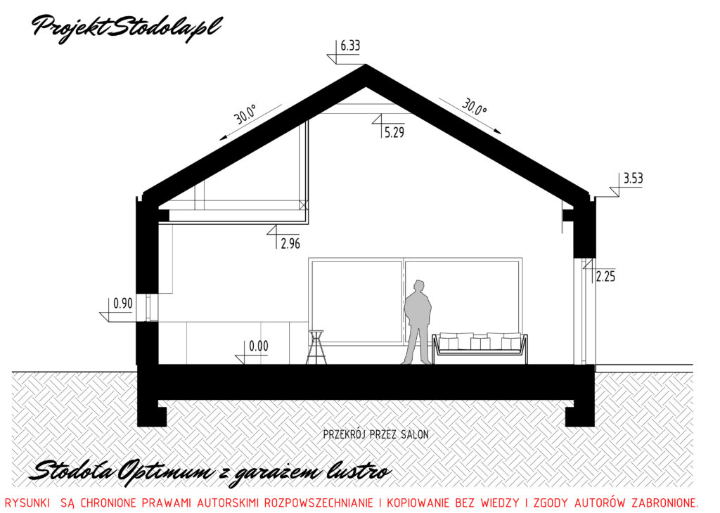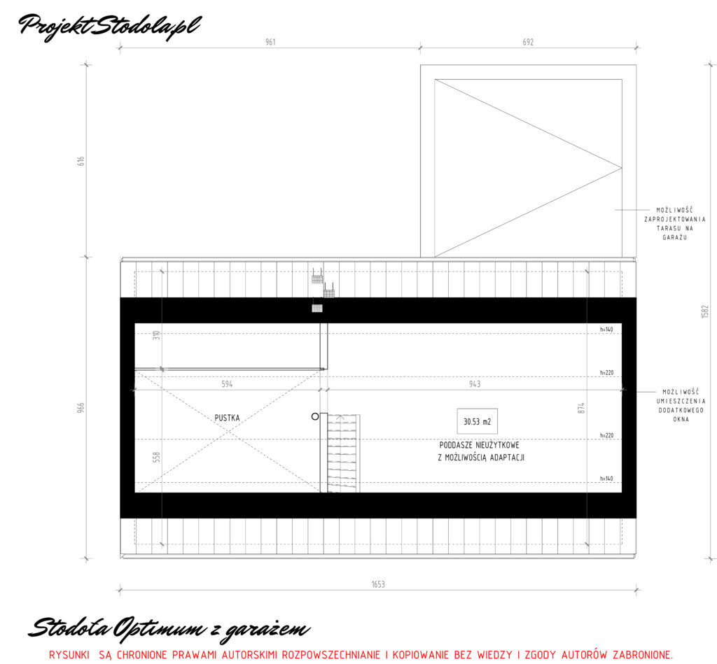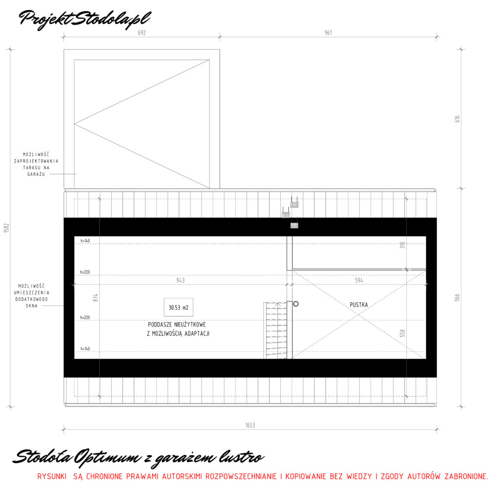 W zależności od Twojej działki garaż można usytuować z boku budynku lub zamienić go na wiatę. Jeśli jesteś jednak zainteresowany tym budynkiem w wersji bez garażu zobacz Stodołę Optimum.