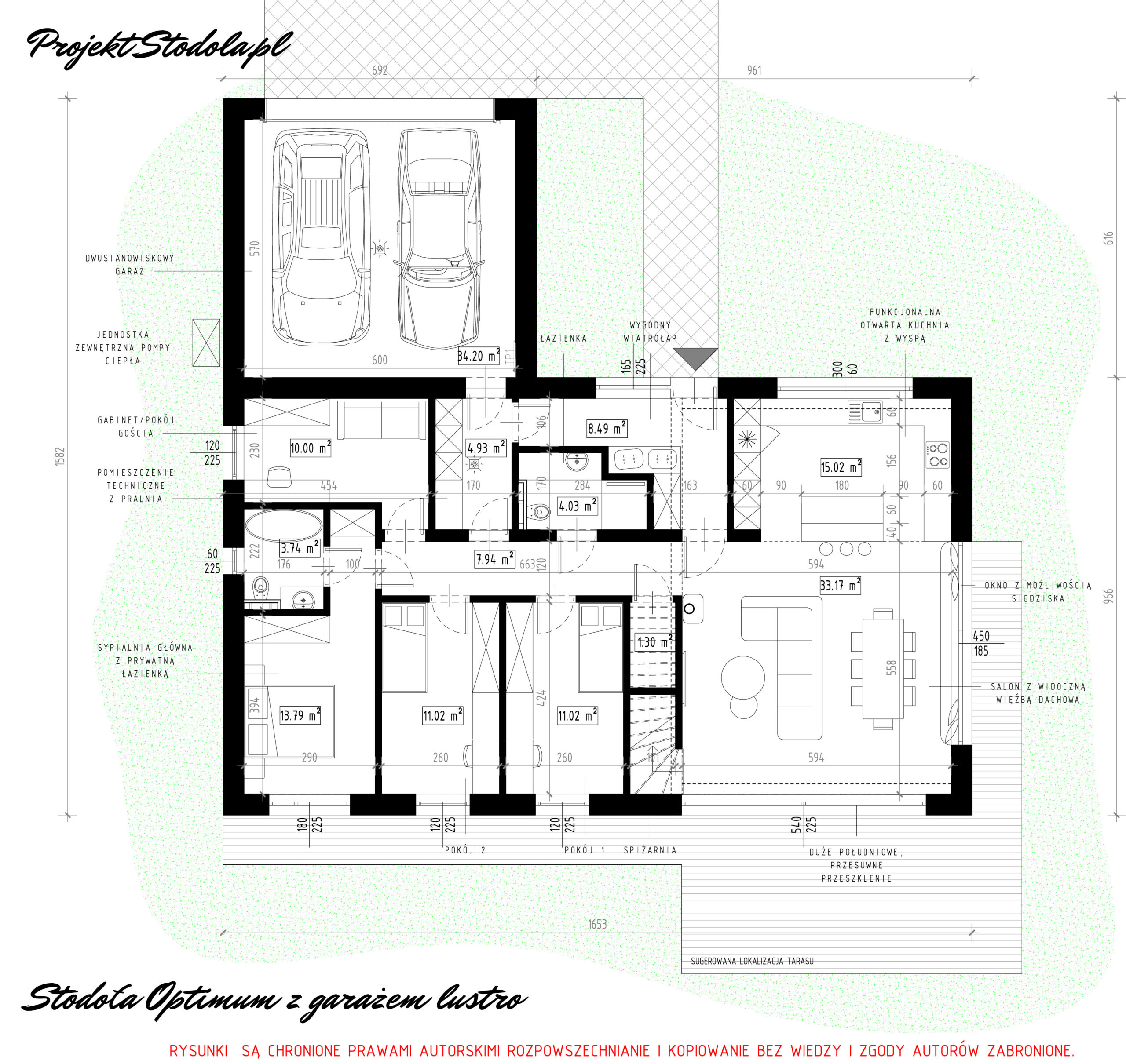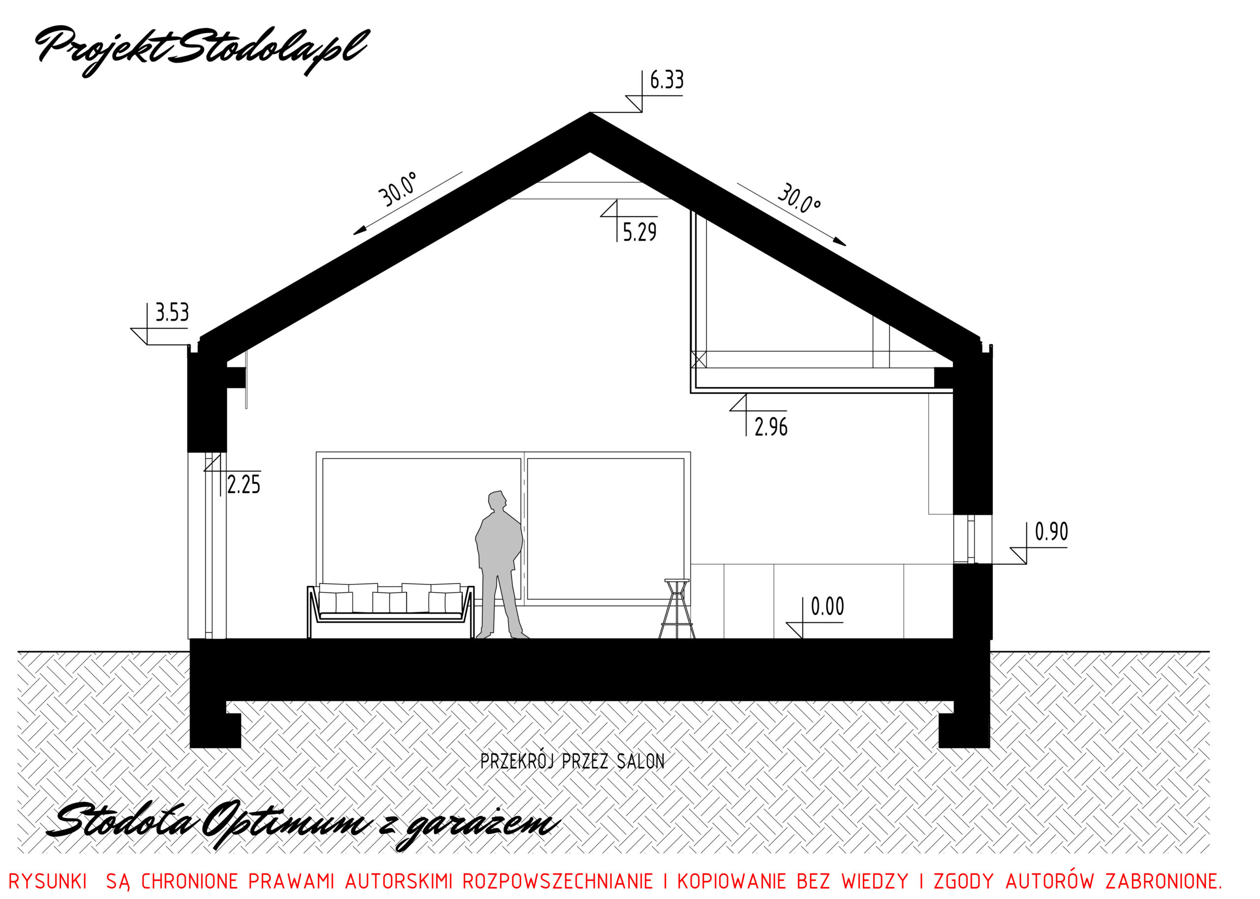 W zależności od Twojej działki garaż można usytuować z boku budynku lub zamienić go na wiatę. Jeśli jesteś jednak zainteresowany tym budynkiem w wersji bez garażu zobacz Stodołę Optimum.