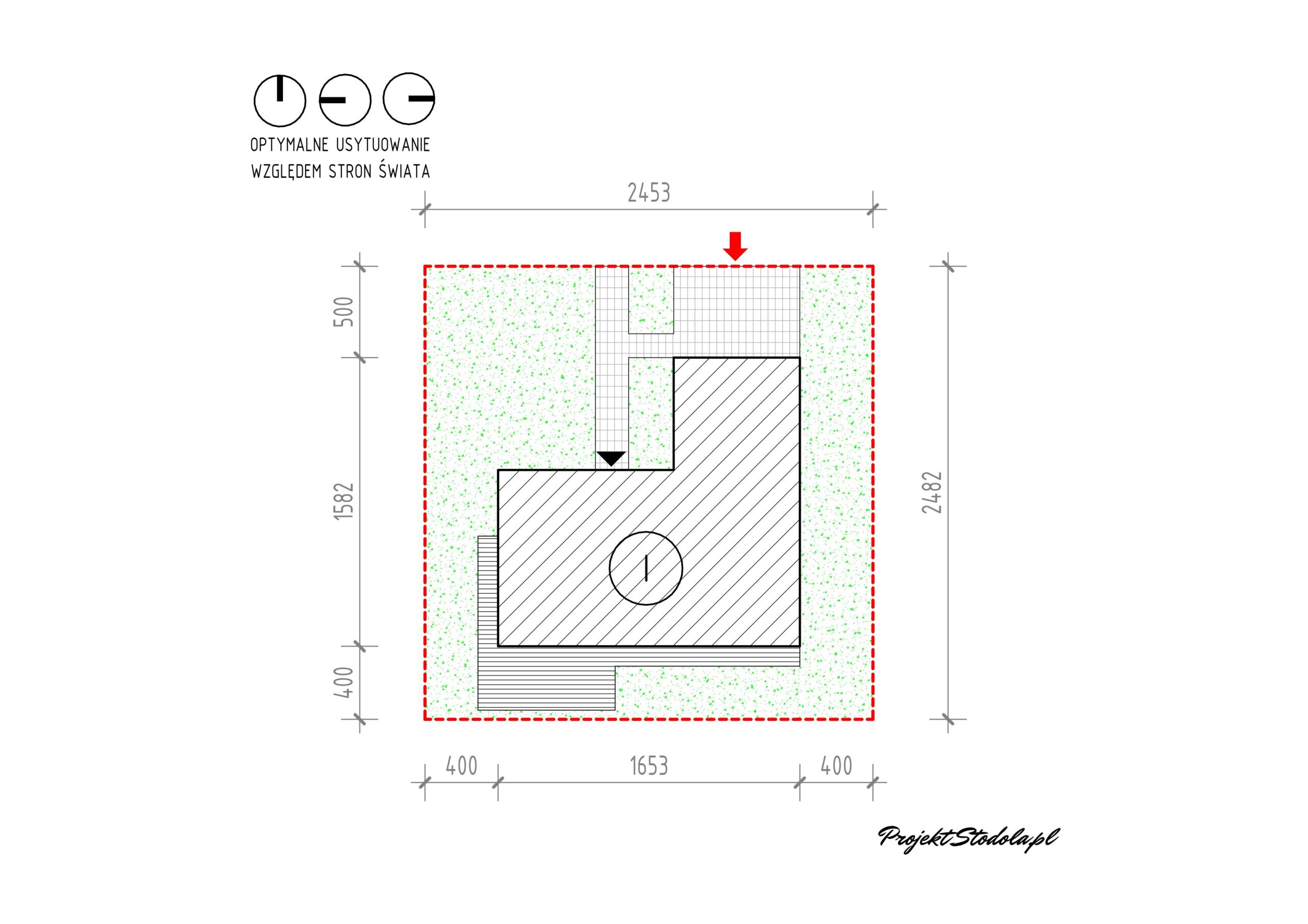 • Minimalne wymiary działki:24,53 x 24,82 m