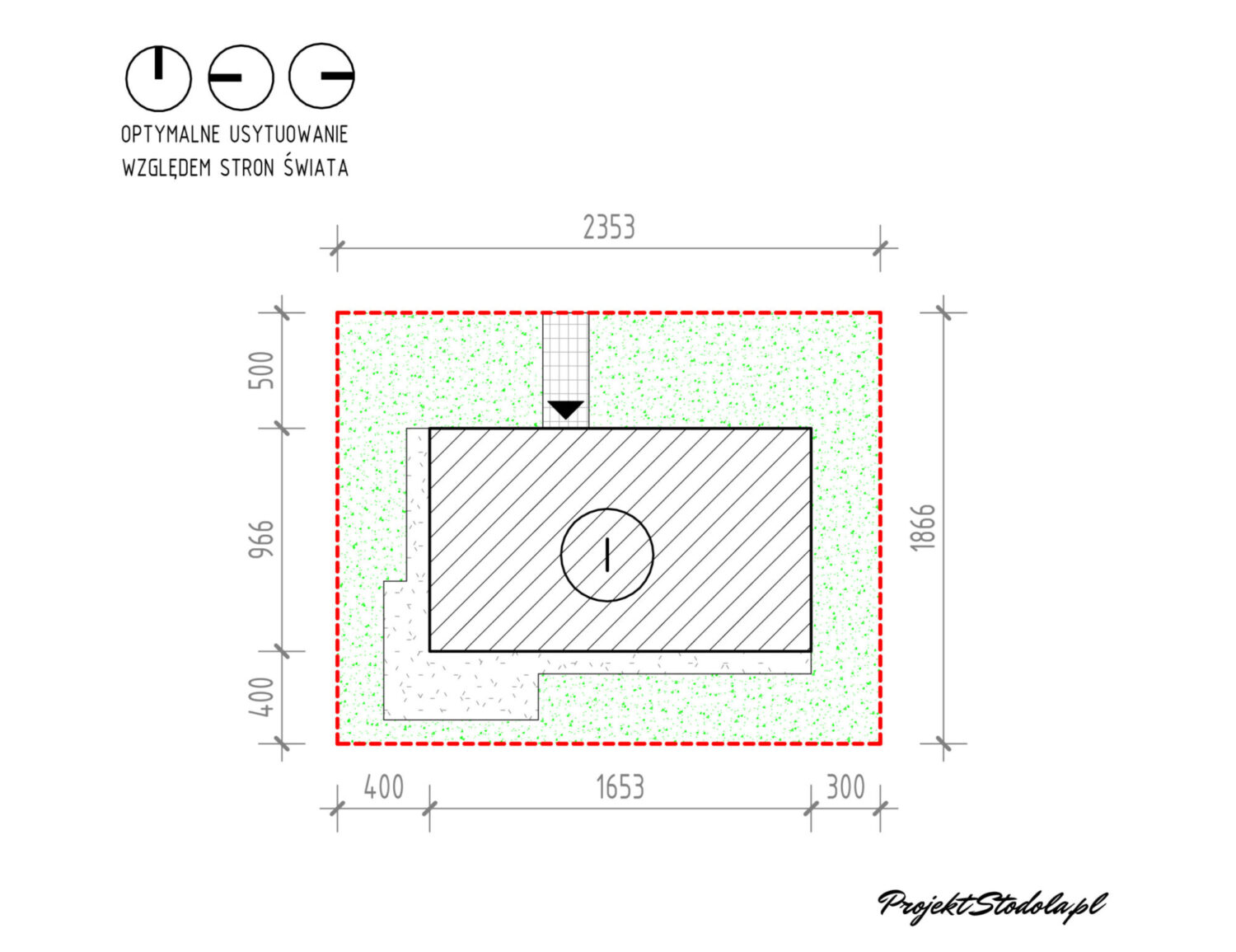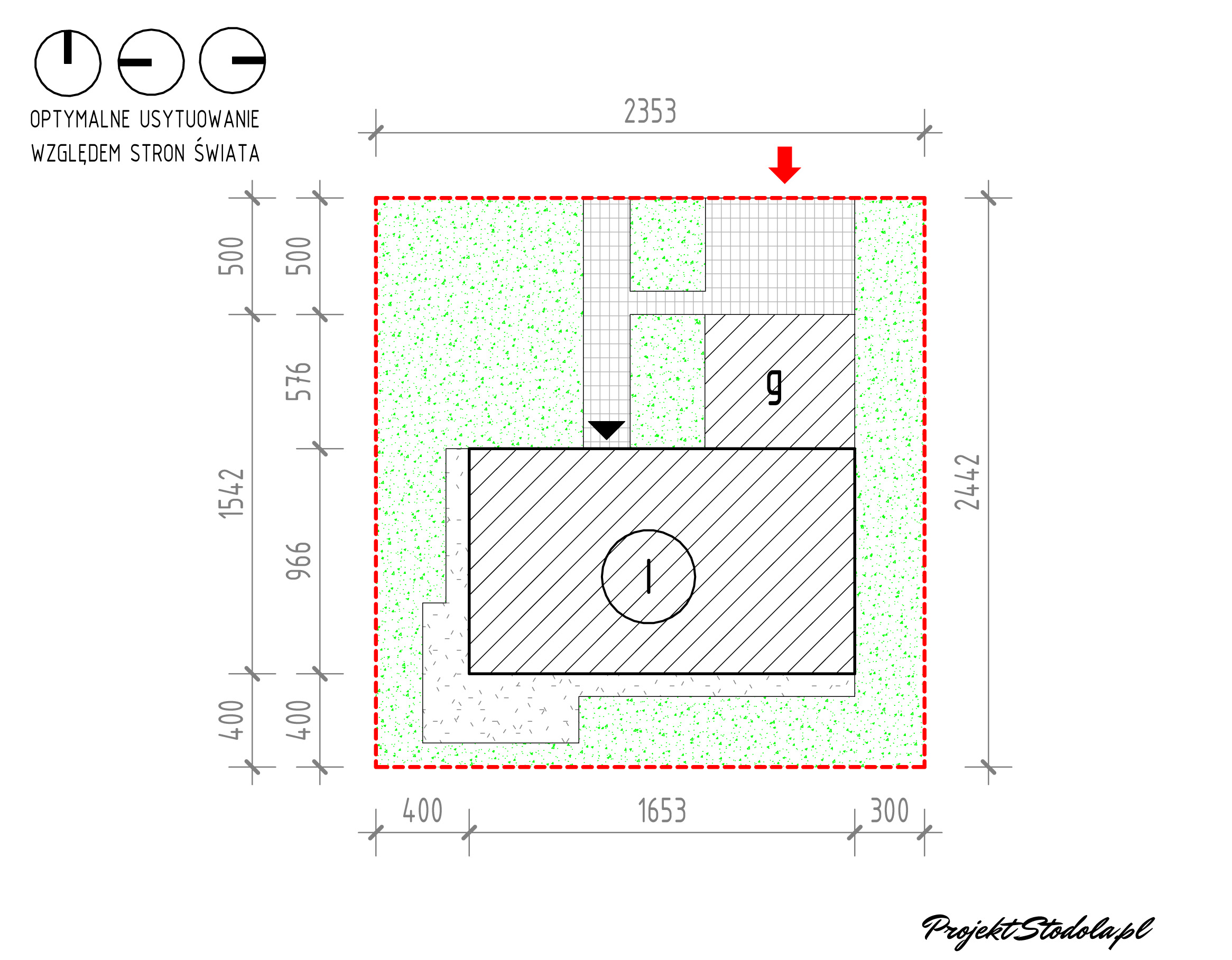 • Minimalne wymiary działki:23,53 x 18,66 m