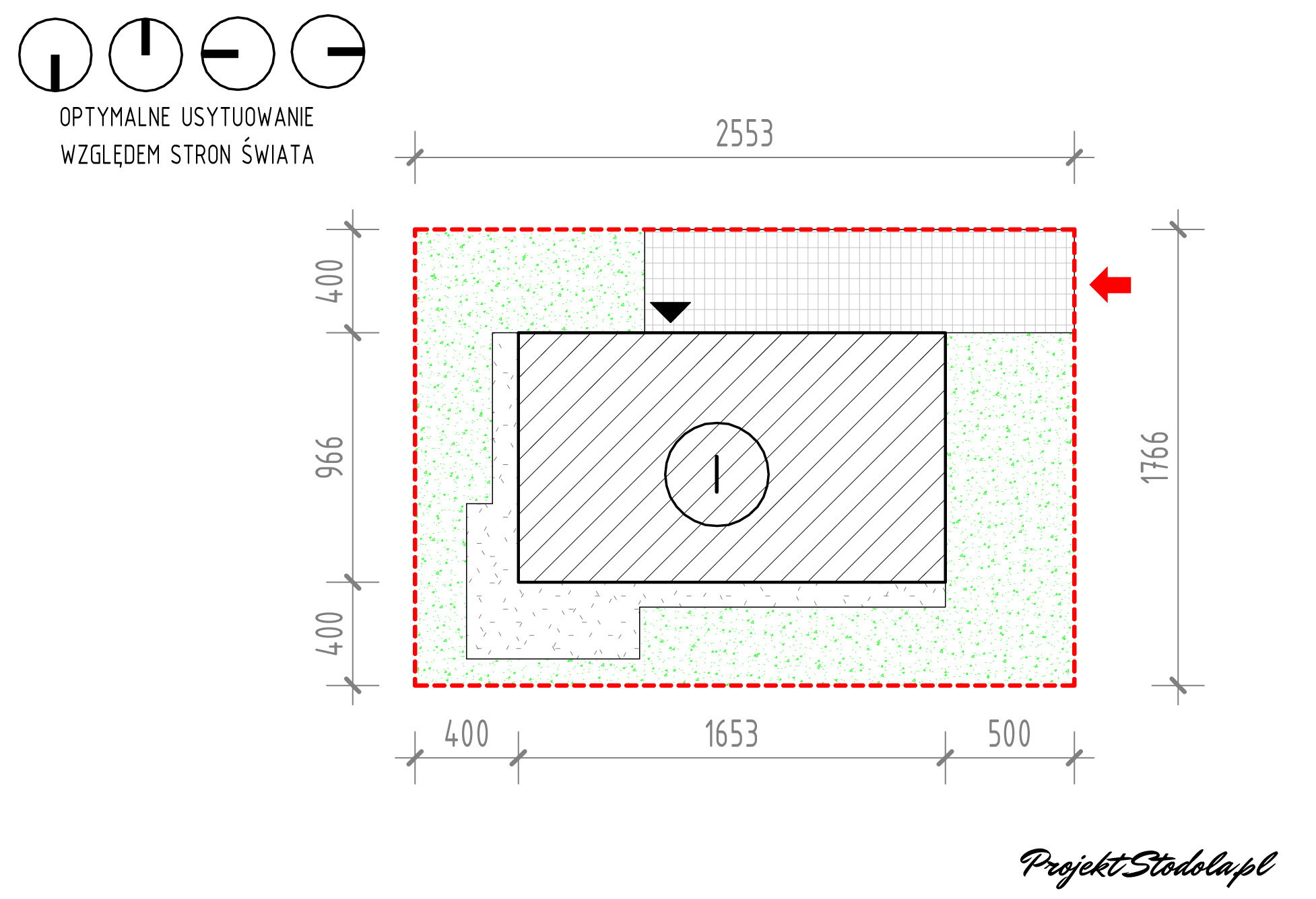 Budynek nie posiada w projekcie garażu, jest więc świetny na mniejsze działki. Ale nie ma problemu, by garaż lub wiatę dobudować od jego frontu (np. jak w Stodole S+) , sprawdź też wersję z garażem Optimum z garażem .